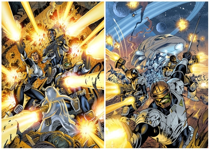 Contrary created a team of powerful Ultras with the goal of protecting the public and keeping other Ultras in line: The original members included the super-strong Prime, Topaz, Gwendor’s silver-skinned warrior queen, Prototype, Ultra-armored Tech’s spokesperson, the smart-talking walking undead Ghoul, the last surviving member of the Exiles, Hardcase, one of the first public Ultras, and Pixx, a young computer genius.