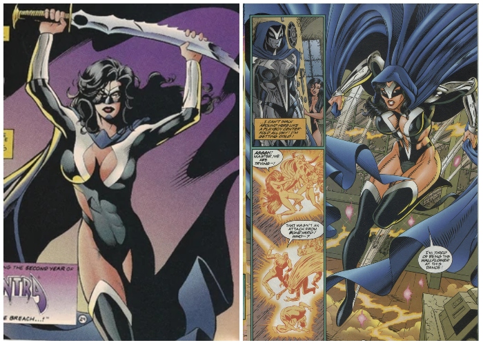 Archimage put Lukasz into a woman’s body to improve his magical abilities and entrusted him with mystic objects to augment those abilities in a final desperate attempt to stop Boneyard. Lukasz was very dissatisfied with the situation. This American comic book series was written by Mike Barr, mainly penciled by Terry Dodson and published by Malibu Comics in the mid-1990s, until it was purchased by Marvel Comics. Adam Hughes is credited for the character designs. After the purchase, the title was canceled after 24 issues and revamped in a new version, with a new protagonist. The new protagonist was depicted in Mantra vol. 2 for 7 issues until the series was canceled by low sales.