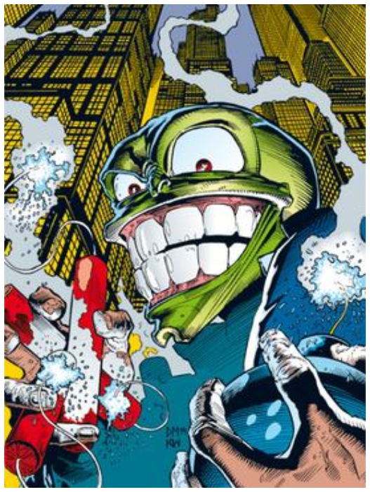 The Mask is an unnamed spirit trapped inside an antique jade mask, not a permanent character. When the ancient mask is worn, the wearer gains superpowers that allow them to bend reality and acts dangerously as the mask brings out the wearer’s dark side.